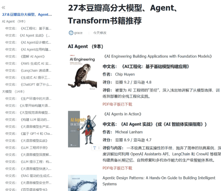 27本Transformer、大模型、AI Agent豆瓣高评分书籍,