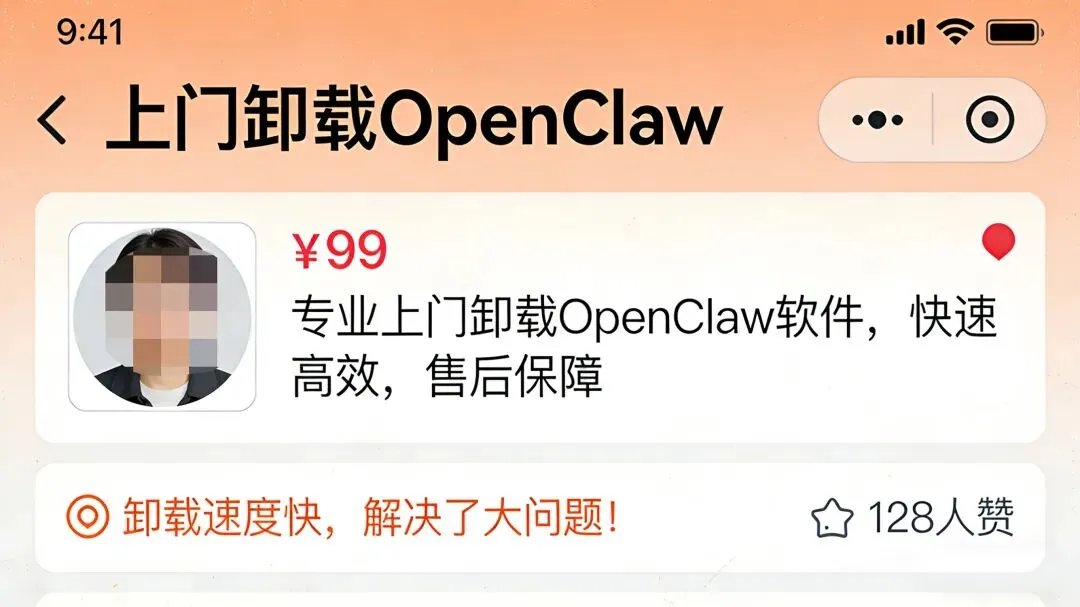 就在“你养龙虾了吗”成为最新社交暗号后不到十天,一个名为“第一批养龙虾的人已经开始卸载”的话题悄悄爬上了热搜。与此同时,二手平台上悄然出现了“299元上门卸载OpenClaw”的新服务,口号写着:“0残留,永绝后患。”