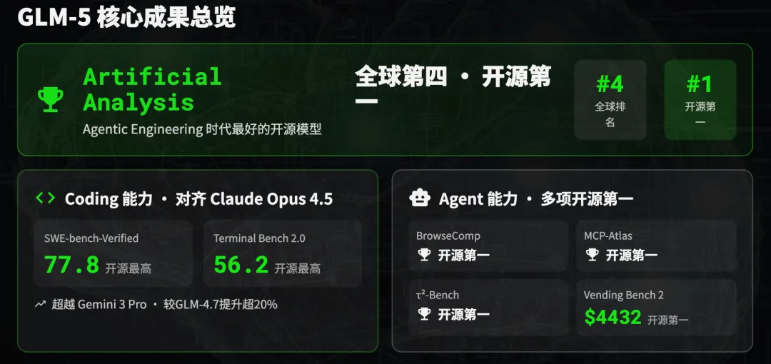 而且更巧的是,智谱竟然又在这个点儿发布了新的大模型 GLM-5,这可是 全球开源模型综合排名第一 的狠角色!