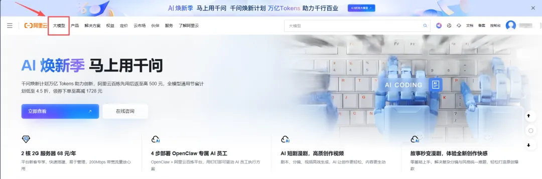 1打开阿里云百炼平台:https://www.aliyun.com/product/ai/agent,登录阿里云账号(无账号需注册,实名即可,或者直接使用支付宝扫码登录)