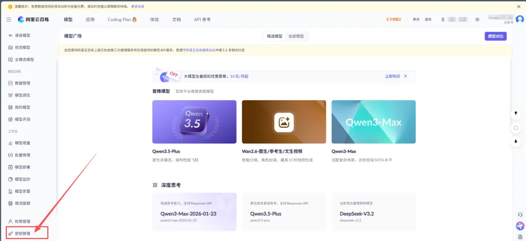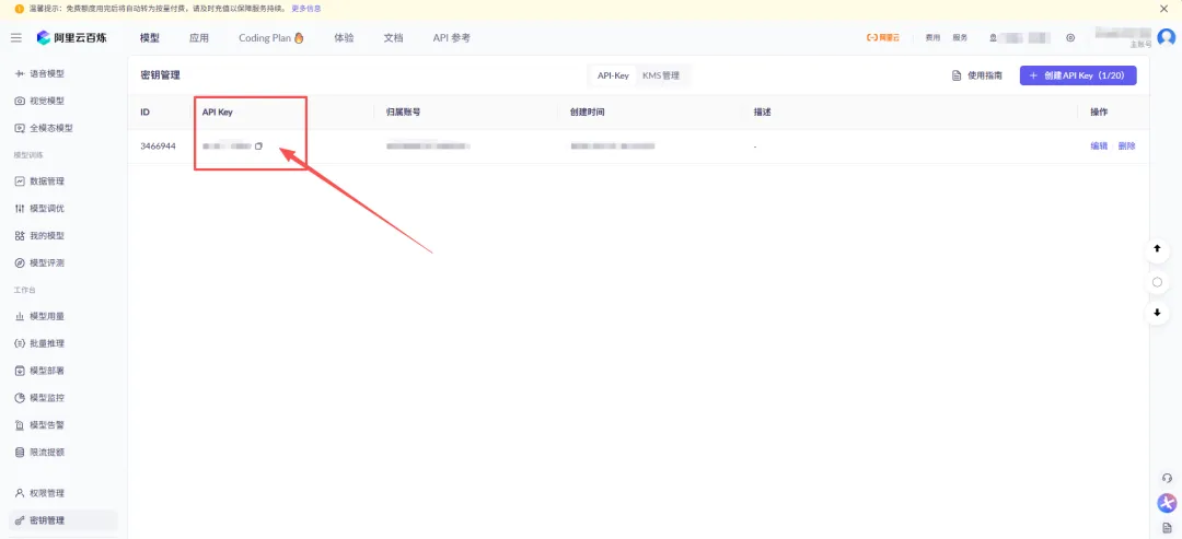 1.2 获取阿里云Qwen免费API Key(唯一凭证)