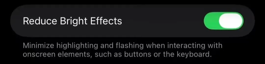 如今在 iOS 26.4 中,苹果进一步扩展了这种自定义权限,全新的“减弱亮光效果”功能专门优化“液态玻璃”设计,主要控制用户与特定 UI(用户界面)元素交互后,系统触发的明亮闪烁反馈。开启该功能后,系统会直接关闭这些可能引起视觉疲劳的动态光效。