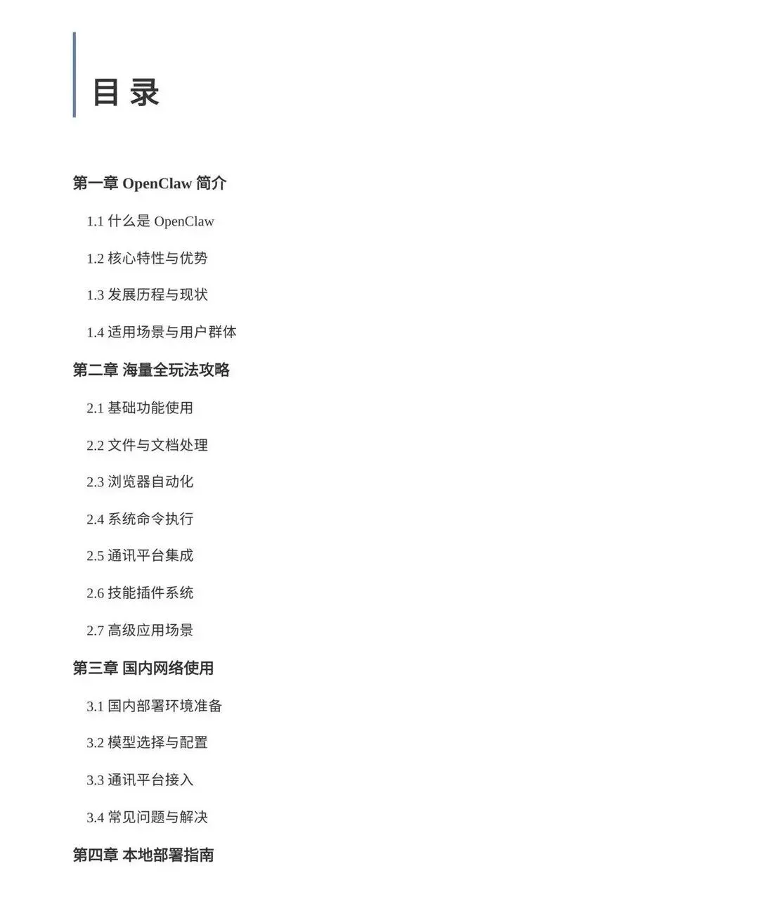 OpenClaw的出现,让技术不再有门槛,让努力更有回报。只要愿意学习、认真执行,零代码也能做出结果,普通人也能靠数字技能提升生活质量,OpenClaw完全使用手册不仅是一份技术文档,更是一张通往 AI 时代的入场券。