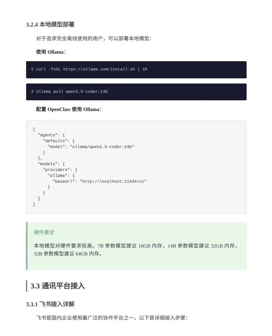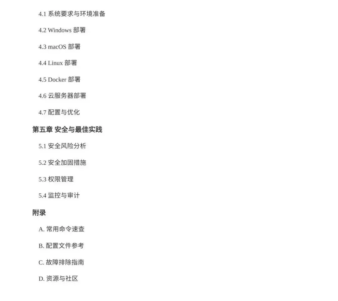 该文档详细讲解了从安装配置到高级应用的全流程,包括国内网络环境下的部署优化、本地模型对接(如阿里云百炼、智谱GLM)、技能插件系统扩展以及多智能体协作等高级用法。同时强调安全风险防控,提供权限管理、网络加固和监控审计等最佳实践。