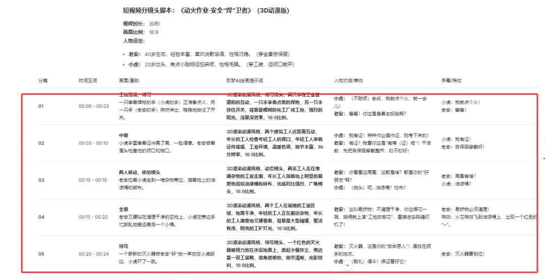 ☝基于deepseek生成的短视频分镜头脚本