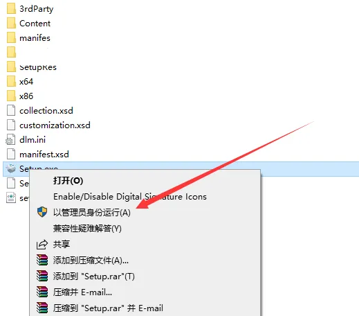 3.右键以管理员身份运行Setup安装程序。