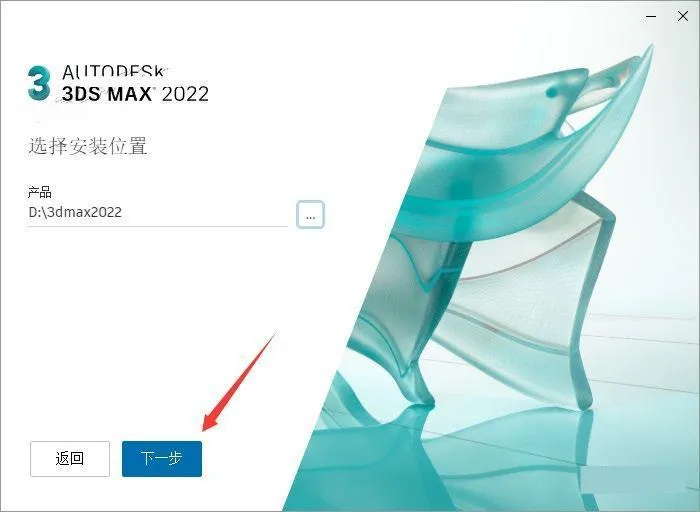 6.点击【…】可更改安装位置(建议不要安装在C盘,可以在D盘或其它磁盘下新建一个“3dmax2022”文件夹)。