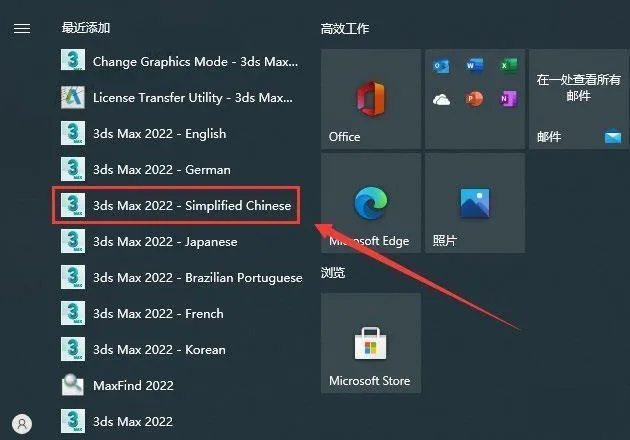 15.点击左下角开始菜单,点击运行3ds Max 2022-Simplified Chinese即中文版。