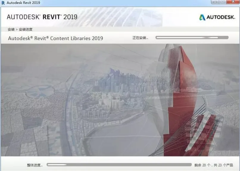温馨提示:安装过程中会在线下载Revit族库,这个进度跟你的网速与Autodesk服务器有关,请耐心等待。