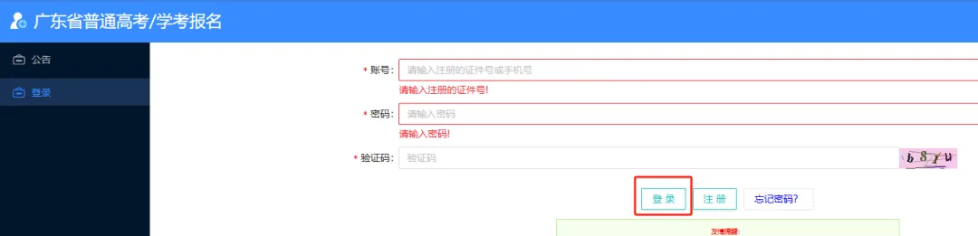 选择“登录”,输入证件号/手机号、密码和验证码(图形验证码)。