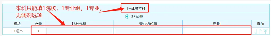 专科组输入院校代码、专业组代码和专业代码填报,一共可以填35个院校专业组,可以不填满。