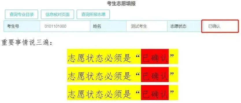 当确定不再进行志愿修改时,必须在规定时间内进行网上志愿确认。取消志愿确认后重新修改的志愿必须再次进行网上确认,否则志愿无效。