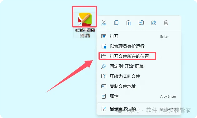 9.桌面找到【CAD迷你画图】,打开文件所在位置