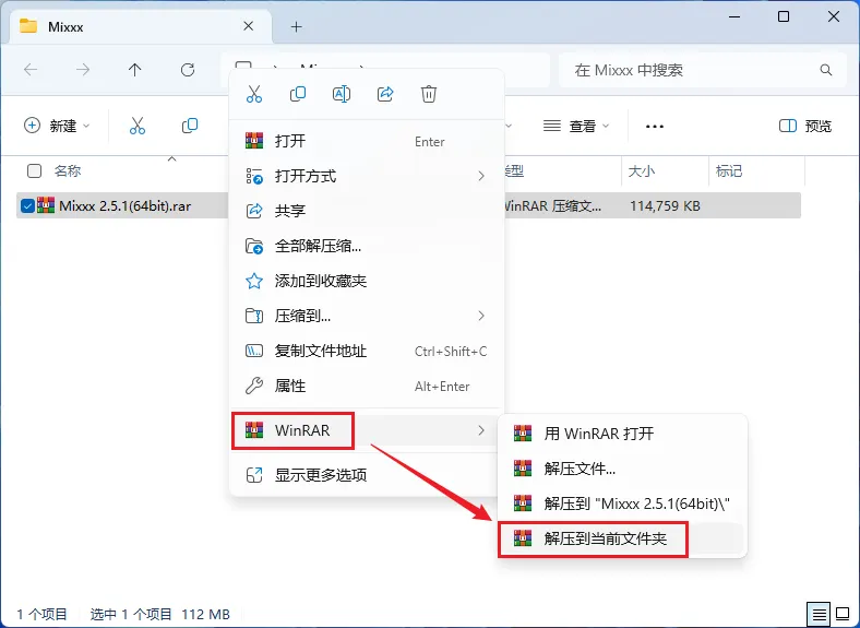 1.右键【下载的安装包】选择【解压当前文件夹】