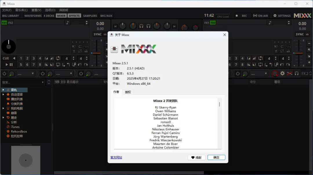 **Mixxx** 是一款功能全面且开源免费的DJ混音软件,支持专业级的现场表演与音乐创作。其提供四组音轨混音台、节拍同步、BPM检测、循环控制、采样触发及实时效果器(如滤波、延迟、移相)等核心功能,并兼容MIDI控制器与主流音频硬件设备。软件具备对MP3、AAC、FLAC等多种音乐格式的高质量播放支持,集成了智能播放列表、音乐库管理、录音直播等辅助工具。通过高度可自定义的界面与皮肤系统,Mixxx 能够为从入门爱好者到专业DJ的用户提供稳定灵活的混音体验,适用于俱乐部演出、广播电台及家庭娱乐等多种场景。