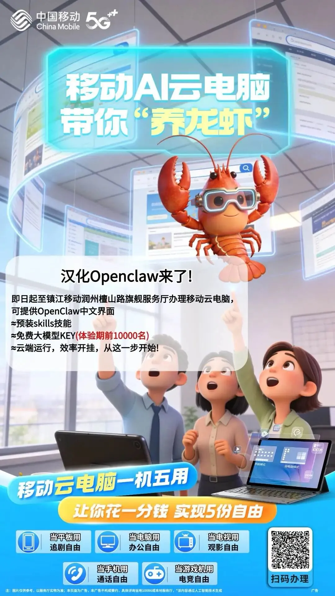 最大福利:前 10000 名用户,免费送大模型 KEY!体验期内不用充值、不用分享,打开即享,直接对接云端算力,让你的 OpenClaw 更聪明、响应更快。配合云电脑实时云端在线,手机、平板、低配电脑都能随时用,本地不占空间、不耗性能,数据安全又省心。