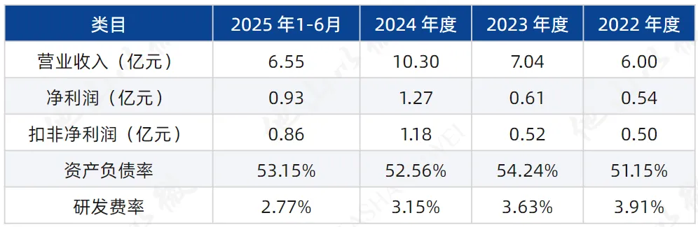 2022-2024年和2025年1-6月,信胜科技营业收入分别为6.00亿元、7.04亿元、10.30亿元和6.55亿元;净利润分别为0.54亿元、0.61亿元、1.27亿元和0.93亿元。
