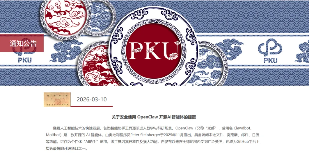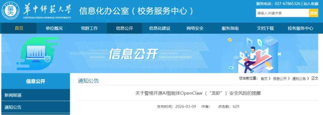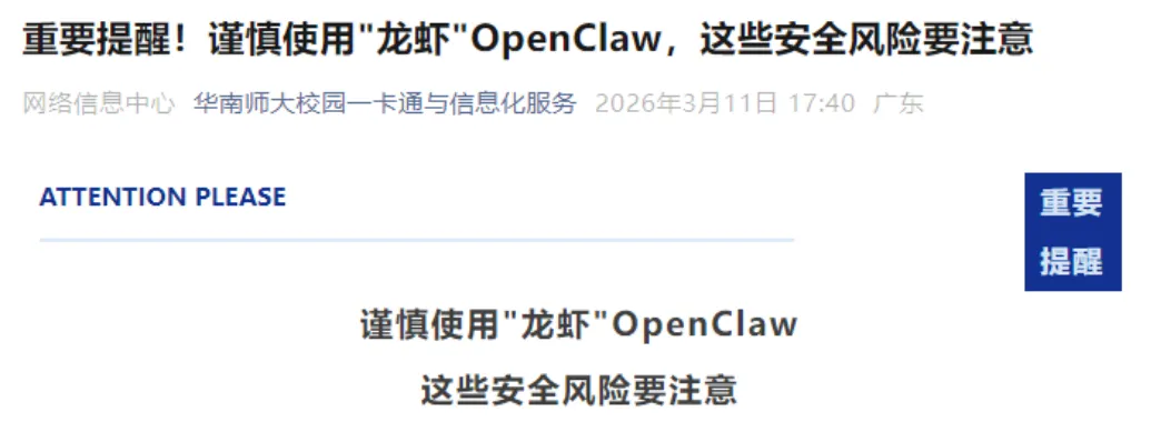 北京建筑大学、华南师范大学、华中师范大学等高校发布硬性规定,严禁在学校办公电脑、服务器、生产设备、智能终端等设备上安装OpenClaw。其中华南师范大学还明确,即便为学习测试使用,也不得向其提供办公系统账号密码、科研数据、个人敏感信息等内容,不得开放公网访问。