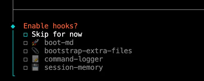 :这是高级功能,用于在启动时加载文档、记录日志等。直接选择 “Skip for now” 并回车。