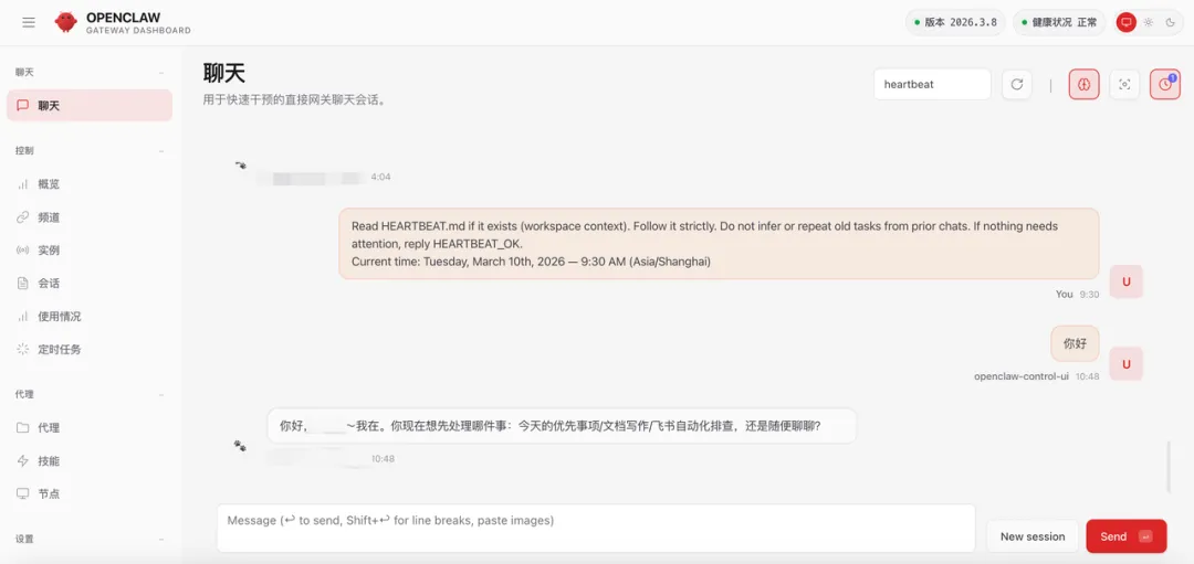 打开和OpenClaw的对话窗口,随便问它一个问题: