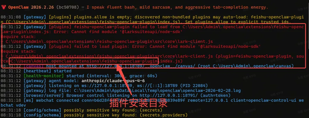 安装飞书适配插件,让OpenClaw能理解飞书的消息:
