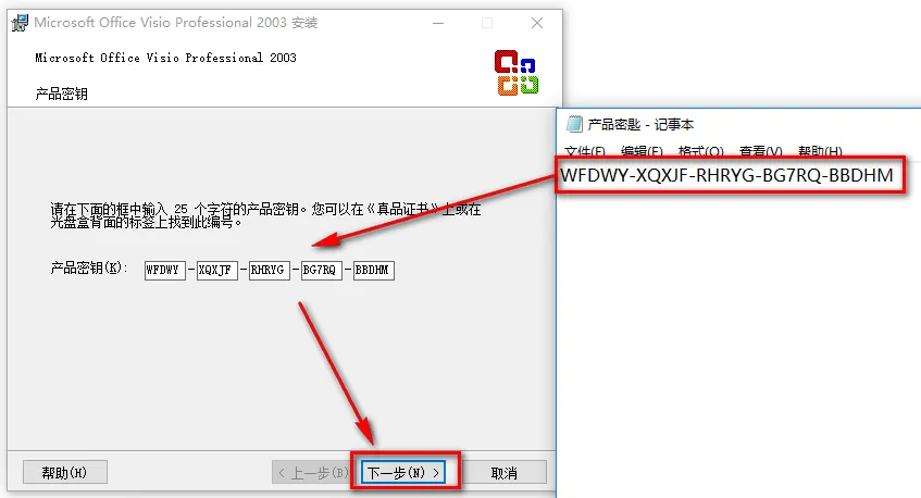 4.输入密匙WFDWY-XQXJF-RHRYG-BG7RQ-BBDHM,点击“下一步”