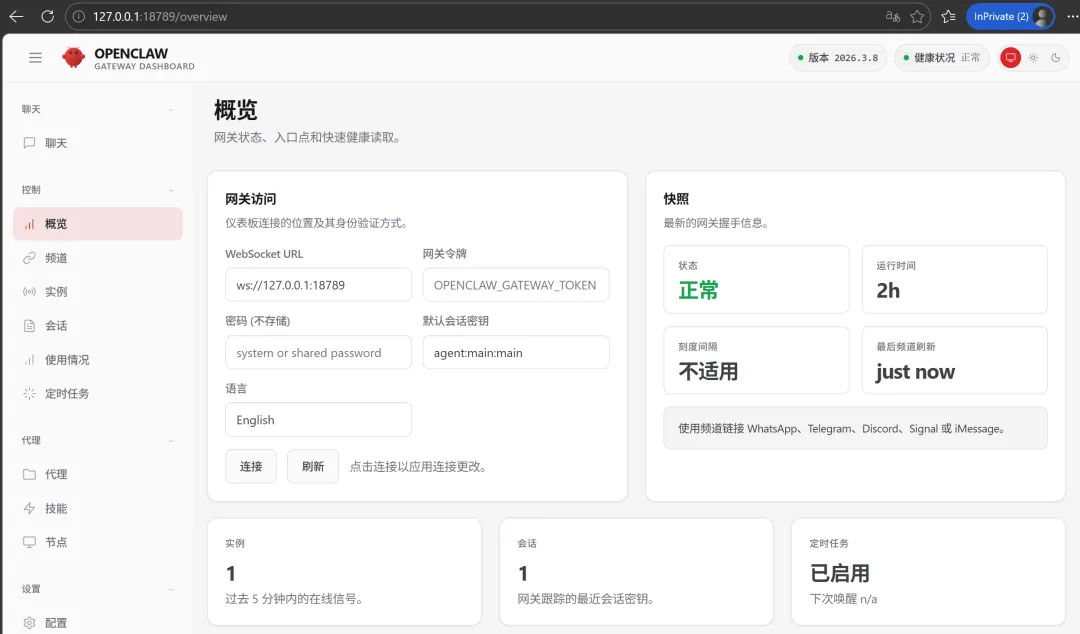 1. 打开控制面板:http://127.0.0.1:18789/
