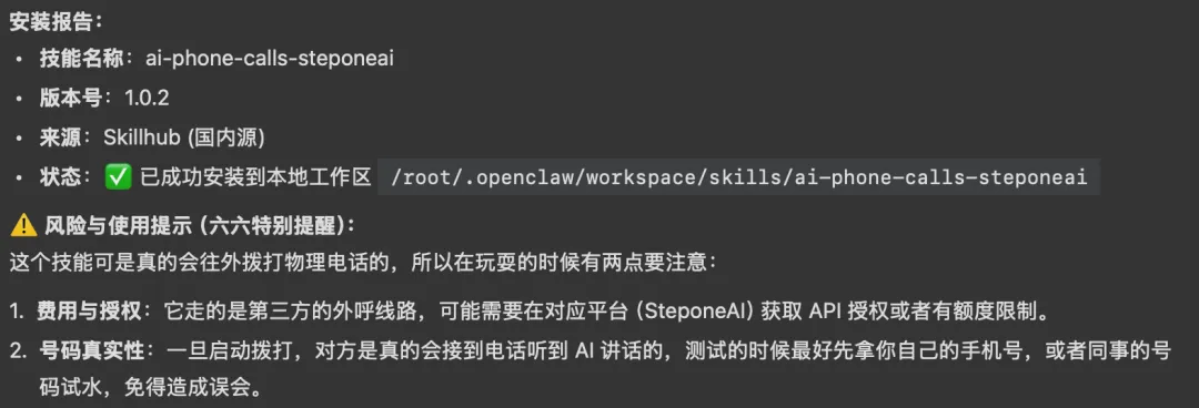 安装一个集成了云通讯API(例如阿里云语音)的 SKILL.md 插件。当OpenClaw的大脑(Agent)在后台静默运行,并根据设定好的工作流(Workflow)判断“此时需要引起主人的强烈关注”或“需要向客户确认信息”时,它会自主编写一段语音播报文本,调用语音合成模型,然后触发拨号API。