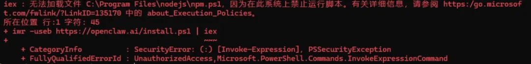 iwr -useb https://openclaw.ai/install.ps1 | iex解除脚本禁止运行限制