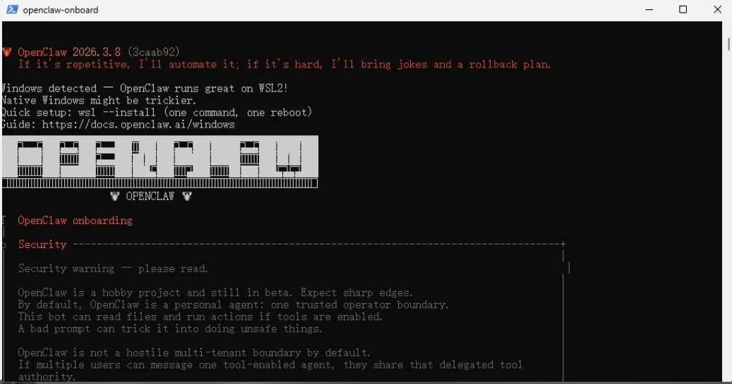 curl -fsSL https://openclaw.ai/install.sh | bash后续的操作就是和 Windows 安装步骤一样了,按照官方的指引一步步选择对应的选项就好了。