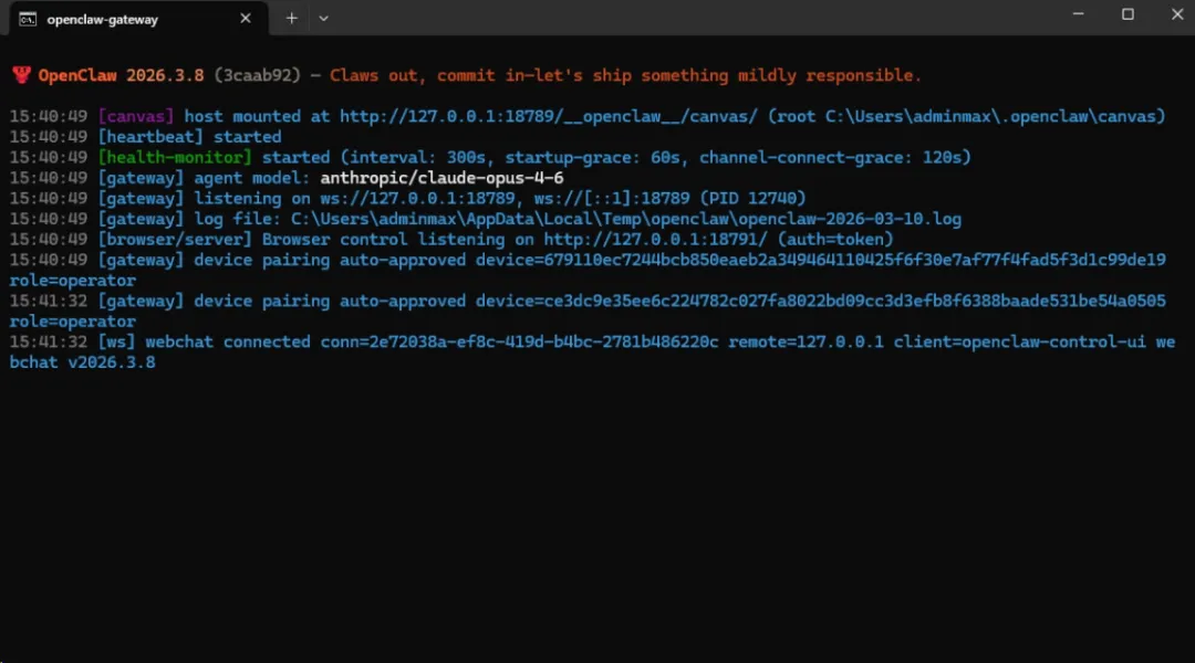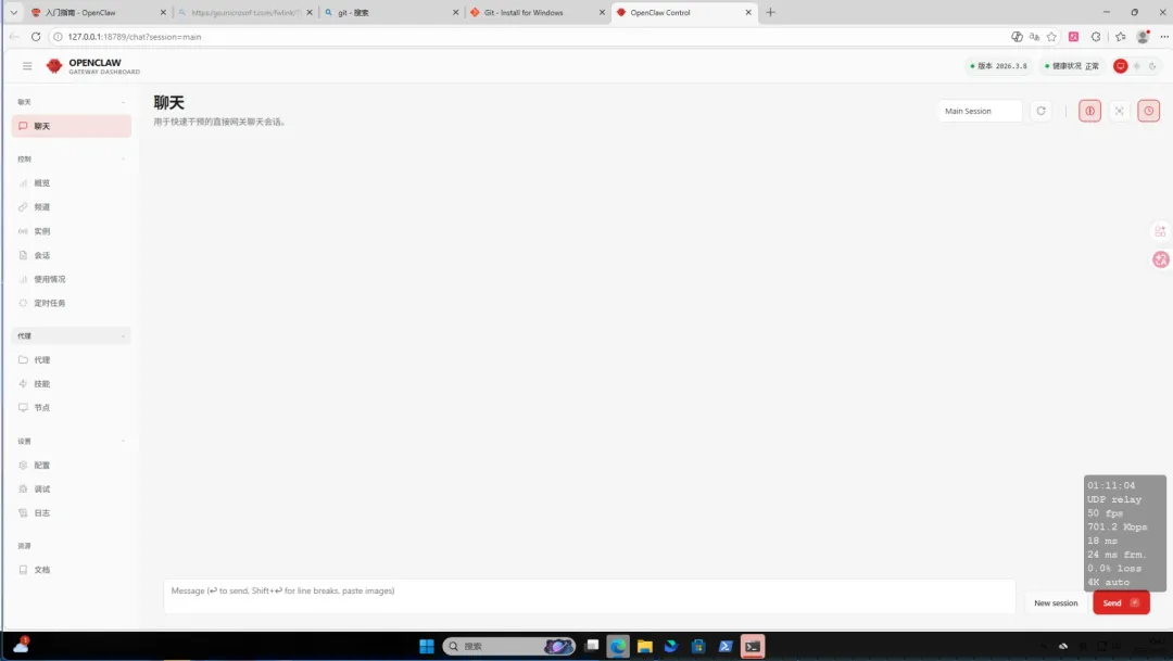 openclaw gateway2. 然后直接在网页输入这串地址:127.0.0.1:18789(默认端口),就可以看到龙虾控制网页重新被打开了!