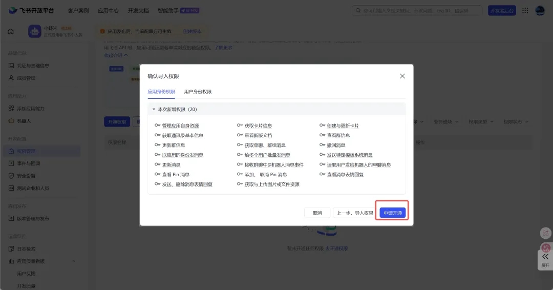 ⚠️导入应用权限