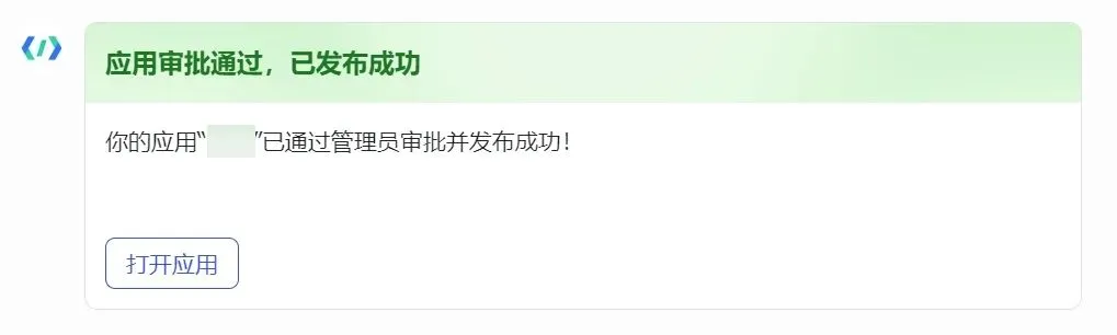 应用审核通过后会有消息通知,直接点击【打开应用】就可以进到和机器人的对话了。