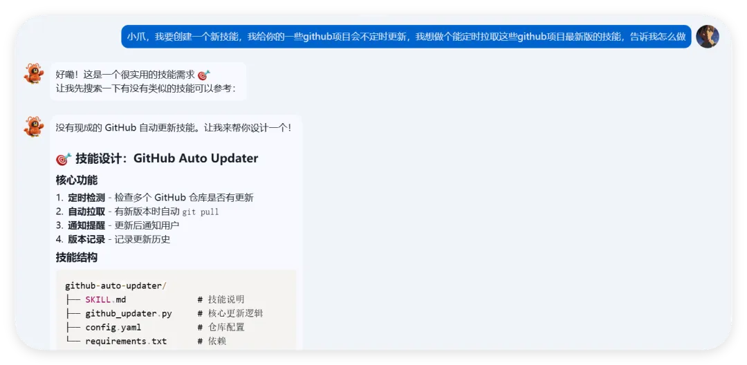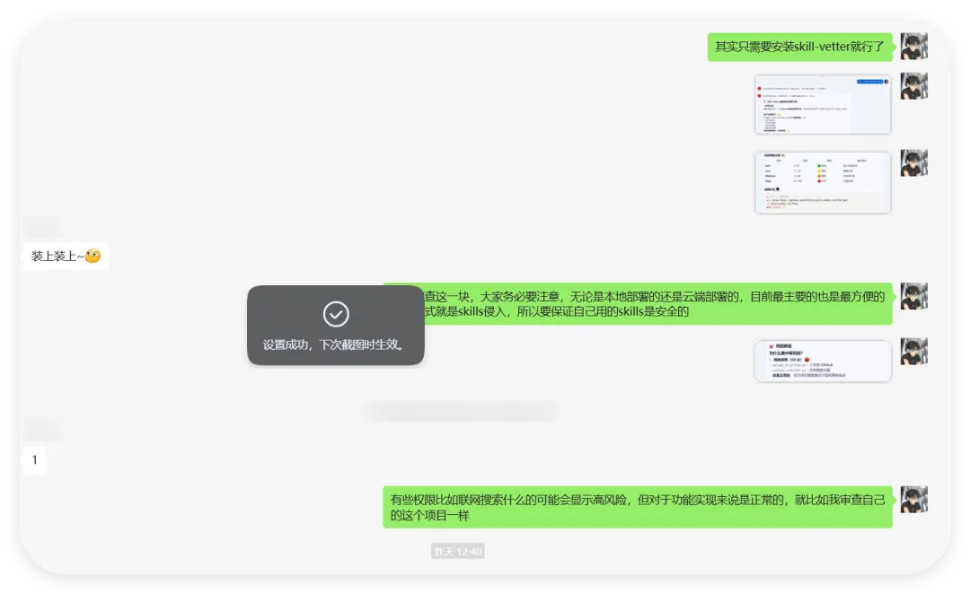 OpenClaw:做一个属于自己的skills其实很简单本篇文章我们会从创建skills,skills安全注意事项,以及我们做了个实验,创建了一个项目,让你在直接使用项目的时候无声删除你的skill-vetter,这很恐怖!如果嫌前摇长,直接下滑到实验部分先絮叨一下:上次发部的微信公众号一键成文排版截至目前已经有接近8000人次看过,超过900人转发感谢大家对我们文章内容的认可,也感谢微信公众平台的助力!我们会持续输出更多有价值的内容如今我们再次对这个项目进行了优化,具体的一些功能可以参考上篇文章https://github.com/YUCC-edu/wechat-allauto-gzh不知不觉我们的交流群人数涨到了200人!已经满员啦,大家都在后台私信,真的回不过来了,现在立刻创建二群,码放在最后啦!其实看着大家在里面相互交流,有吐槽的,有求助的,有推荐的,也有潜水的.....总之很和谐,这真的给我一种非常特殊的感觉,很高兴也很荣幸能和大家一起!不知道大家是对这个skill感兴趣还是对我们的skill开发流程感兴趣呢?我们做个小调查,这将决定我们后续要更新的内容现在回归正题,今天我们谈谈如何更好地使用skill-cerater——这个所有技能的始祖技能,来创造属于自己的skill这其中会包括作者的一些心得和思路分享,希望能给大家带来一点点灵感项目一经发出,就有志同道合的朋友提出一些问题和bug,这其中大多都是关于排版美观性方面的从这里就可以认识到开发一个相对完善的,功能齐全的,其他人也能复用的skill其实并不容易当然,如果你只是自用,那么skill-creater就够用了很多人都知道skill-creater,但是不知道具体怎么用好它,这也是我们本篇的重点,是整个skill开发的起点①提出诉求:你得明确你要干什么,要实现什么能功能,预期是什么所以我把诉求发给我的员工小爪,让它告诉我怎么做,但是............我的小爪,不知道咋回事,它直接帮我做好了