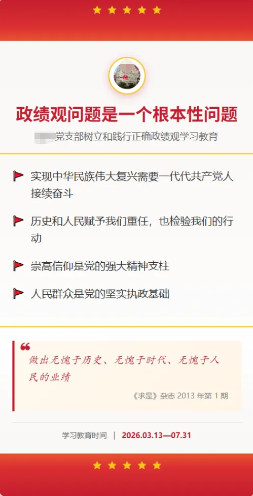 下午的时候,蓝三喵接到一个党建任务,要做一组"树立和践行正确政绩观"学习教育的知识卡片。