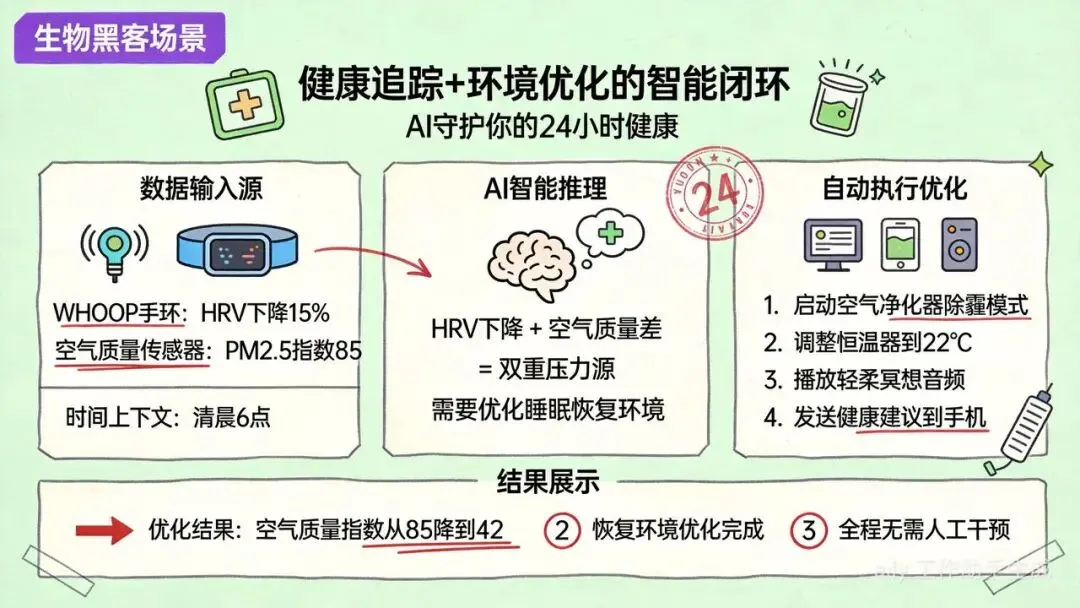 🩺 场景二:健康追踪+环境优化(生物黑客场景)