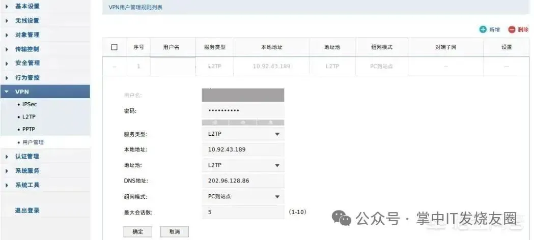 最大会话数指的是同时可以有几个人连接VPN服务端。
