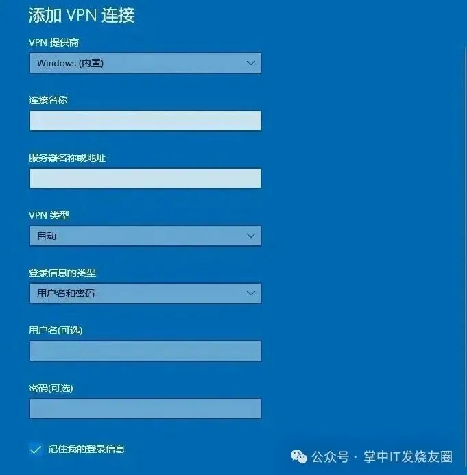 2、安照提示填入在VPN服务端设置的参数,然后保存即可。服务器名称或地址填写VPN服务端的公网IP地址或域名。