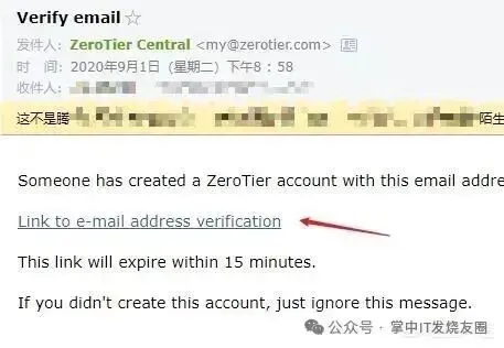 4、随后会在注册的邮箱内收到一封zerotier的验证邮件,点击验证即可。
