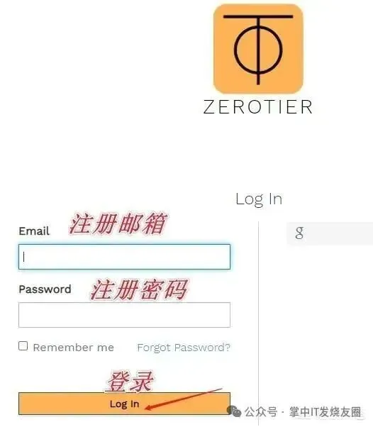 1、访问zerotier的官网,拉到页面最下端,找到“Login”,然后在跳转后的页面点击“Log In to ZeroTier”进入登录页面。