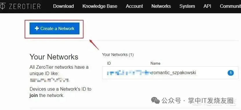4、打开这个界面时,会获得一个“Network ID”,这个ID就是我们要用到的一串字符。