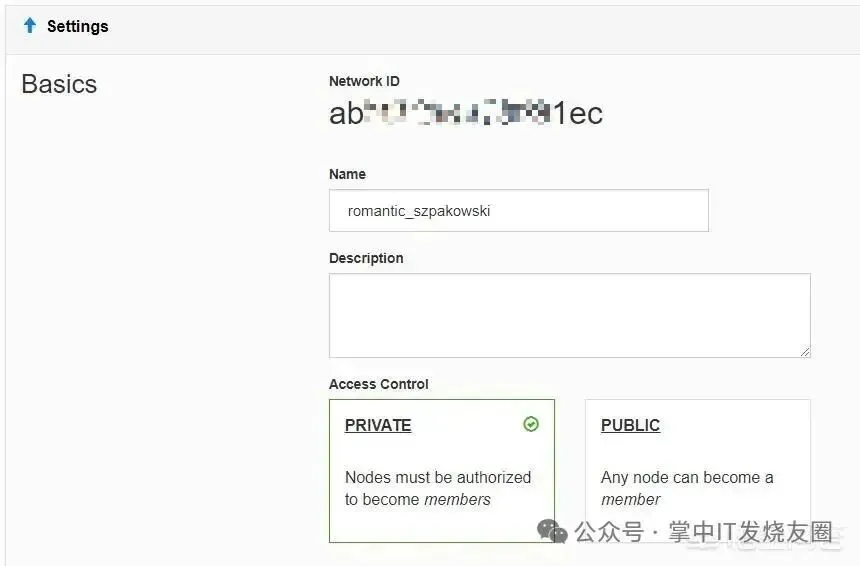 这串字符就是这个网络的本体,它是随机生成的网络名,所有通过zerotier客户端组成的一个局域网就需要这串字符。并不需要担心这串字符会泄露,因为客户端使用这串字符连接后,需要在网络管理后台勾选后才能处在同一个局域网内。