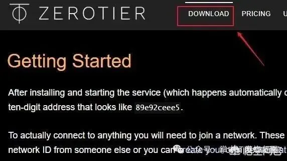 1、在zerotier的官网点击“DOWNLOAD”进入下载页面,找到对应系统平台的zerotier下载,并安装。