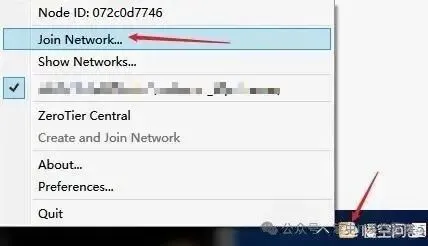 2、以Windows平台为例,打开zerotier后,鼠标右键点击桌面右下角zerotier任务栏小图标,然后鼠标点击“Join Network”。