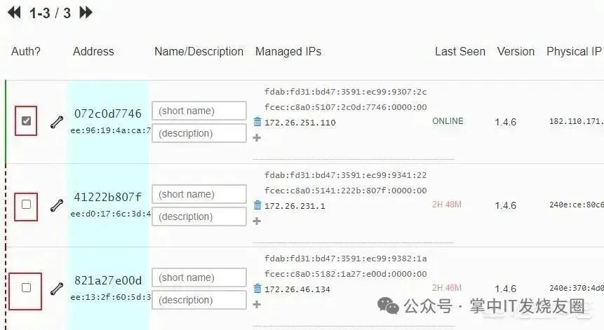 4、再次进入zerotier网络管理后台,对新建的连接进行授权。
