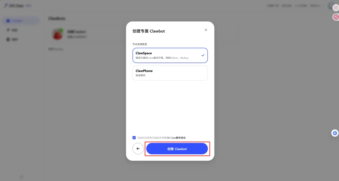 再点击“创建Clawbot。