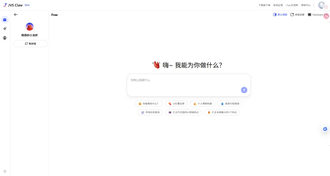 然后点击新对话就能和小龙虾进行对话了!