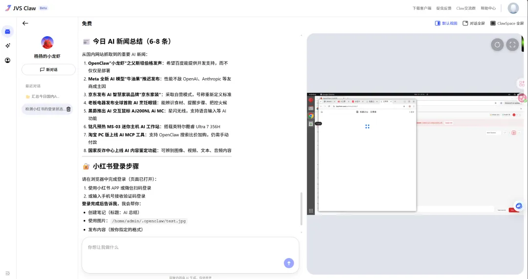 最后看它输出的结果,已经将AI新闻已经找好了,而且还给了我一个详细的小红书登录的步骤,很贴心!
