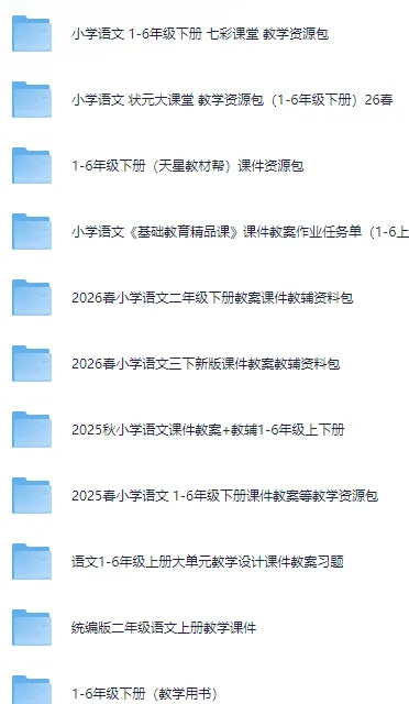 本文收集的资源是26春小学语文课件教案教学设计免费下载链接|人教版部编版|一二三四五六年级上下册备课资料最新优质资源,内容丰富全面存放于网盘,网盘部分资源截图如下: |