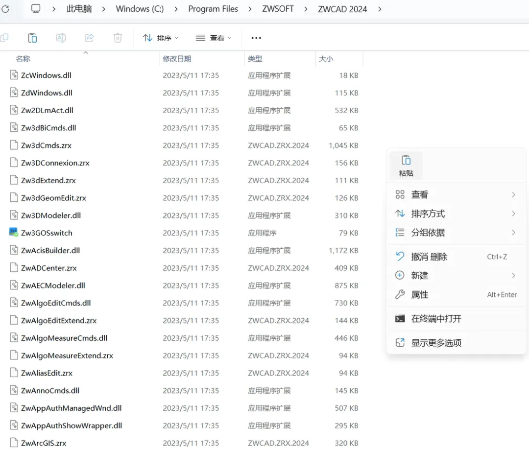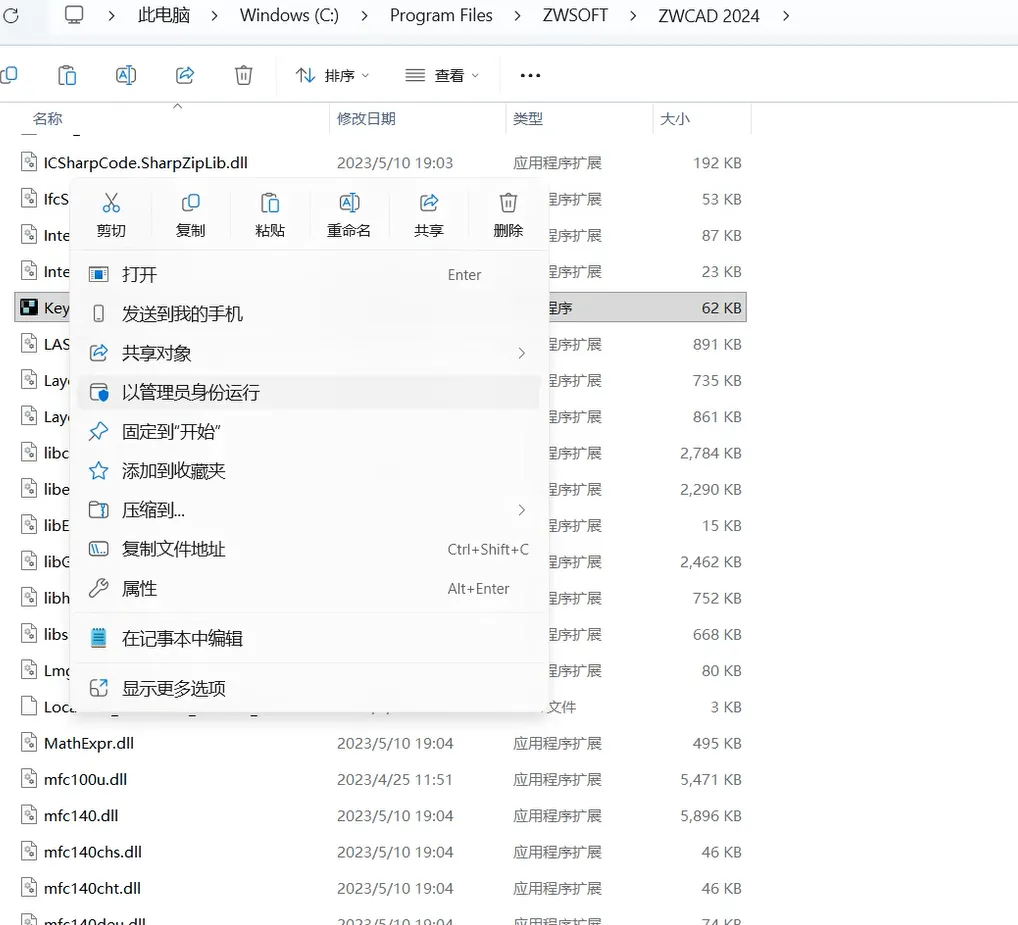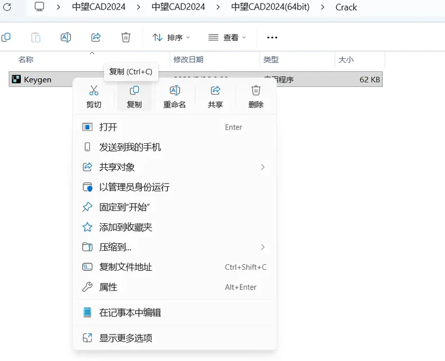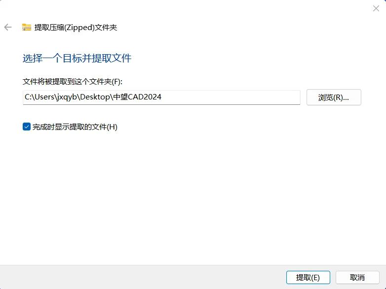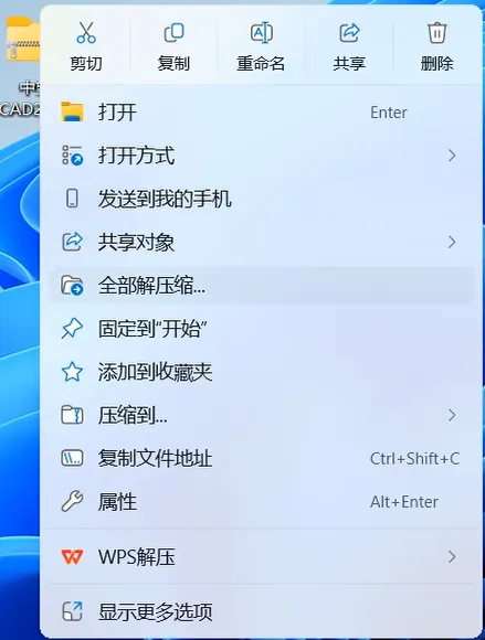 2.1,鼠标右击【中望CAD2024】压缩包(Win11系统需先点击“显示更多选项”)选择【全部解压缩】。如下图: